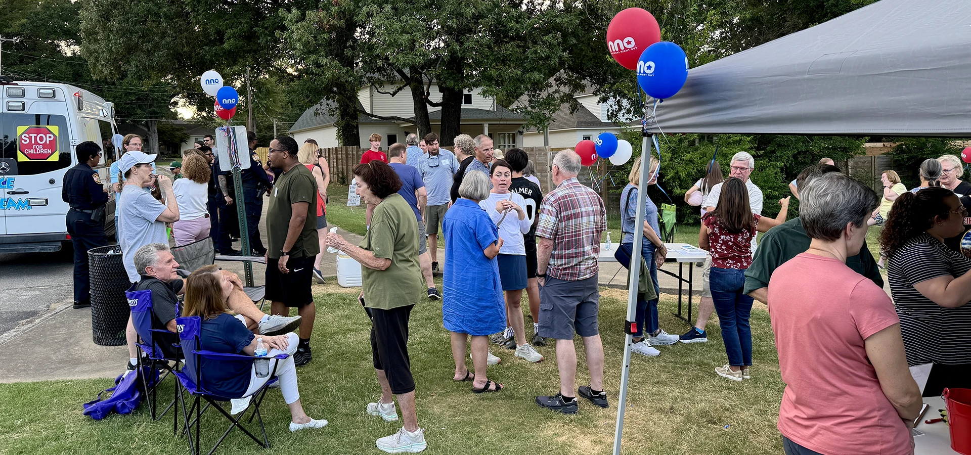 More than 75 neighbors gathered for our first-ever participation in National Night Out — plus a squadron of our MPD and MFD first responders.
