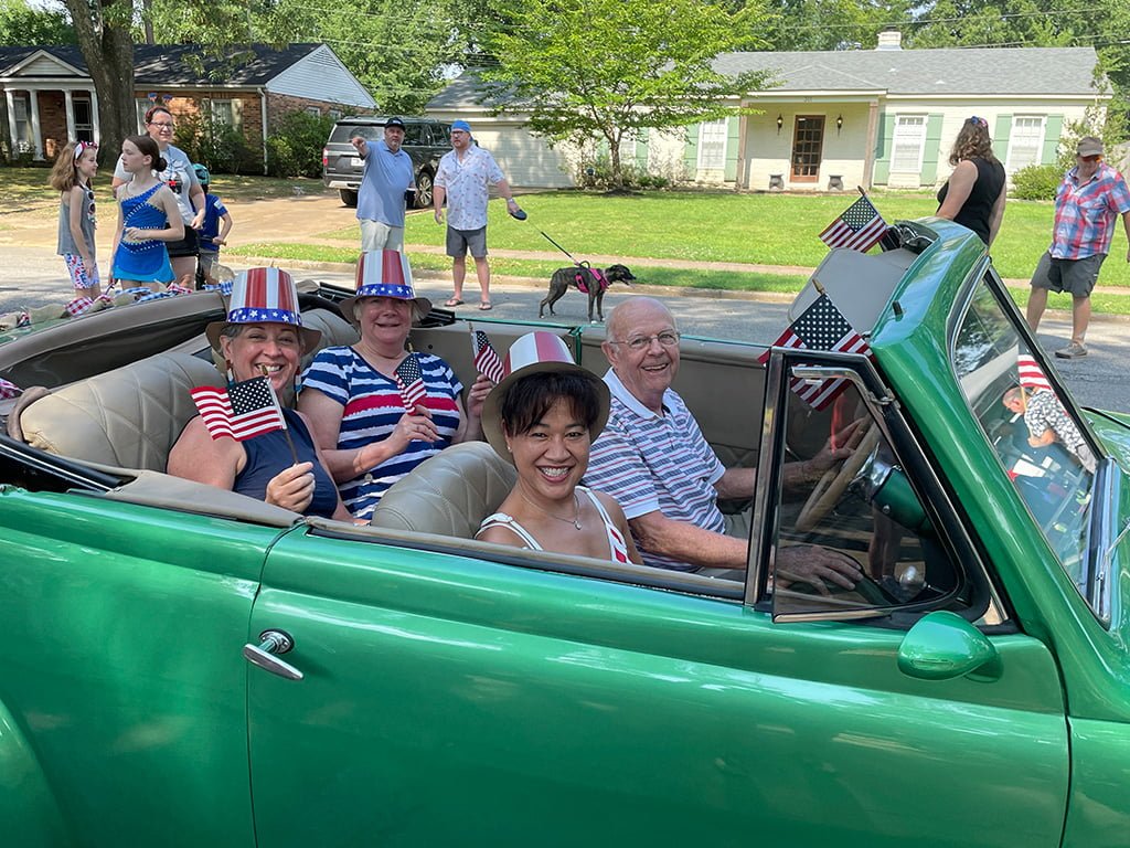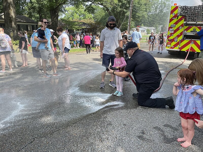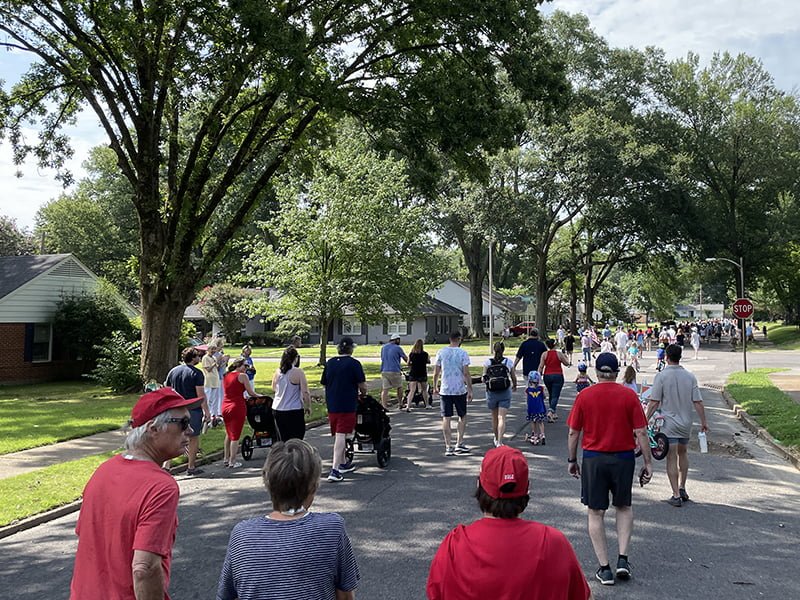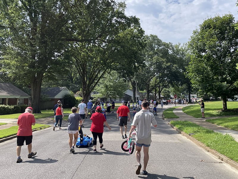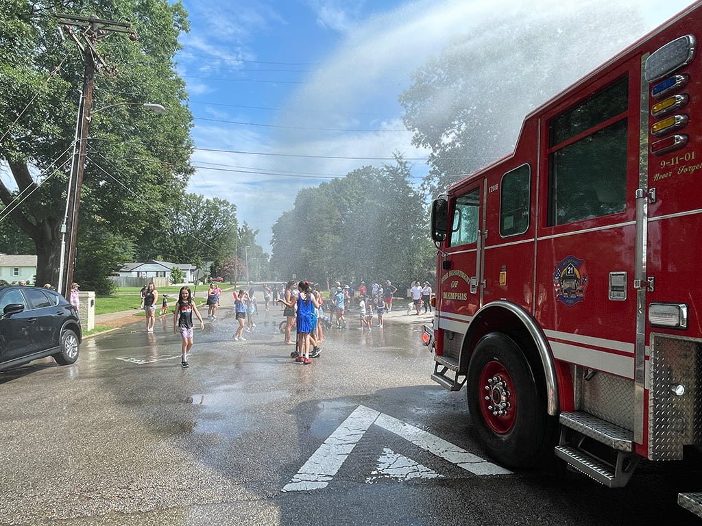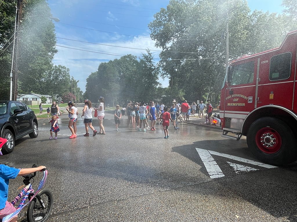 Well over 200 people turned out for the 2023 Avon Woods Fourth of July Parade and Party — plus more than a few furry friends! The crowd began gathering around 9:30am and the parade began with a Memphis Fire Department fire engine taking the lead. Neighbors cheered the parade along the way, standing and waving from lawn chairs. Some dressed in red, white and blue. Some with boom boxes blaring patriotic tunes. We may have even spied a mimosa brunch along the way. Afterward, kids entertained themselves in an inflatable bouncy house or cooled down under the spray of the fire engine. And what Fourth of July would be complete without grilled hot dogs — courtesy of grillmaster Jonathan Jussley with help from Torrent Johnston. A special THANKS to event coordinators Derrick and Amanda Von Stein, Barbara Rea, Virginia Williams, Julie Hollis and Michele Buring!