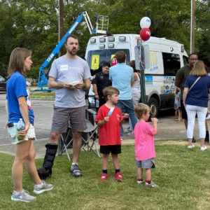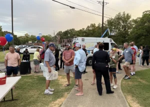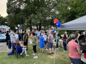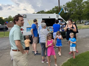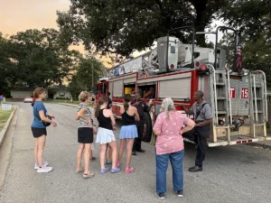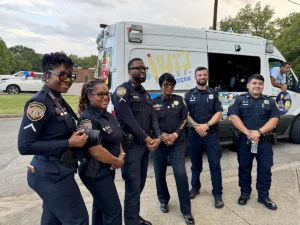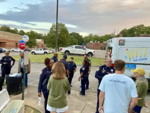 Avon Park was bustling on the evening of Tuesday, Aug. 5, as about 75-80 neighbors gathered for our first-ever participation in National Night Out. We were honored to be joined by several Memphis Police Department officers from Tillman Station, including the newly named Colonel Alyssa Lesueur and second-in-command Major Adam Pickering, as well as firemen from Memphis Fire Department’s Station 21 (Mendenhall at Sanderlin) who arrived in a pumper truck for the kids (and adults) to admire!