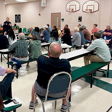 Mrs. Seago, who is retiring after more than 20 years serving the MPD Neighborhood Watch program, offered advice and examples from other successful Neighborhood Watch groups. Know your immediate neighbors and, if you see something or someone strange, text or call them. Both she and Colonel Moffatt suggested using a text messaging app such as GroupMe, but laying down some ground rules, emphasizing its use for serious situations only. They also stressed the importance of getting to know your local police.