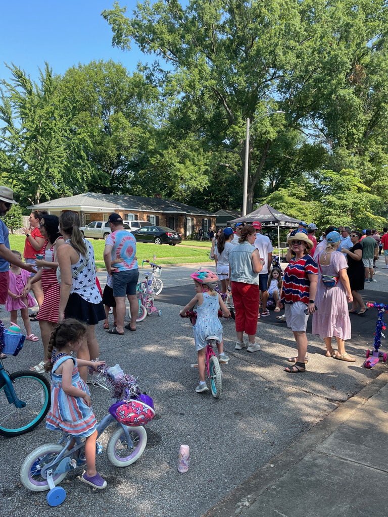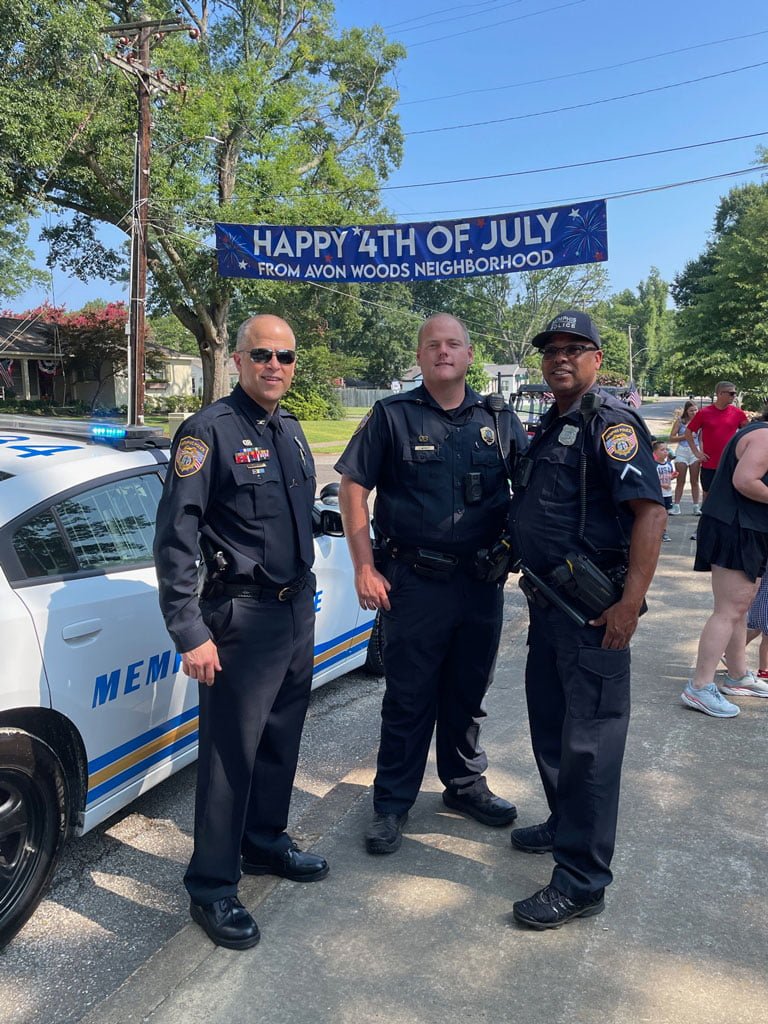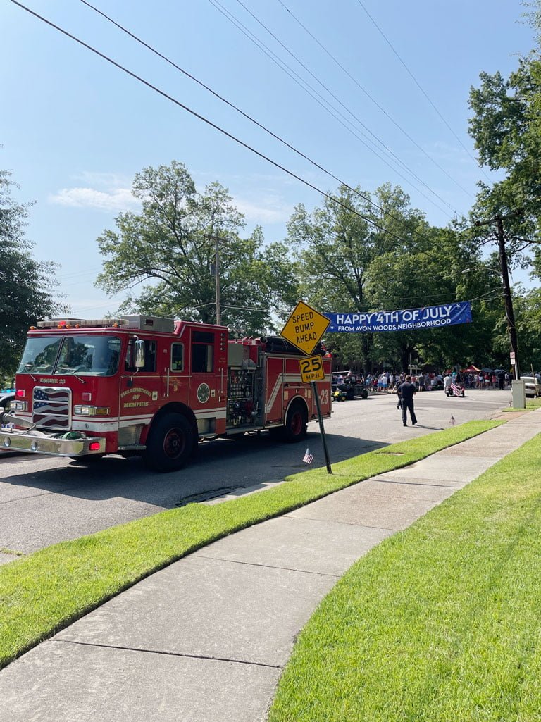 Avon Road was packed with more than 200 neighbors for the 2024 Avon Woods Fourth of July Parade and Party! The crowd began gathering around 9:30am and the parade kicked off at 10am with a Memphis Police patrol car taking the lead. Neighbors cheered the parade along the way, standing and waving from lawn chairs. Following the parade, kids entertained themselves in an inflatable bouncy house or cooled down under the spray of a Memphis Fire Department hook-and-ladder. We were joined by Mr. Joe’s Ice Cream, Hollywood Feed, and Hook Point Brewery. And what Fourth of July would be complete without grilled hot dogs — courtesy of grillmasters Torrent Johnston and Tim Williams. A special THANKS to event coordinators Derrick and Amanda Von Stein, Torrent Johnston, Mary K Allen, Barbara Rea, Paige Wallace, Julie Hollis and Jay Perdue!