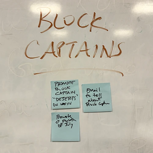 If you’re interested in volunteering as a Block Captain, please contact Mary K. Allen. Remember, the role of the block captain is simply connecting the neighbors immediately surrounding them, creating a group text, informing each other of criminal or suspicious activity, and sharing to the Block Captains text group for neighborhood-wide awareness of significant incidents.